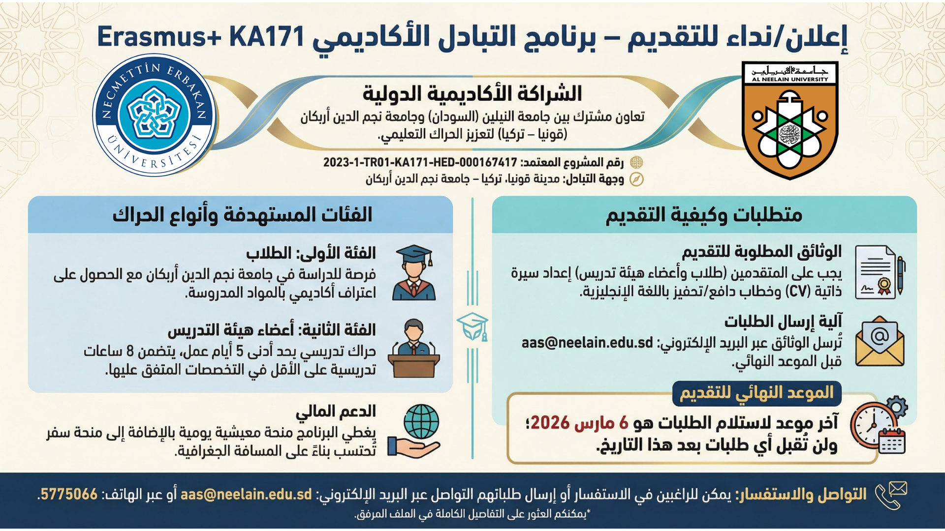 الحمدلله رب العالمين الحمدلله الذي بنعمته تتم الصالحات ، وقد كلفنا الله في هذه الظروف المعلومة بإدارة هذه المؤسسة العريقة جامعة النيلين أكبر جامعة في السودان حيث يبلغ عدد طلابها حوالي مائة الف طالب ، والعاملين بالجامعة أكثر من (3500) عامل ، توجد بالجامعة كل التخصصات العلمية (التطبيقية) والانسانية (الاجتماعية) . عند تسلمنا إدارة هذه الجامعة حرصنا في البداية على معالجة بعض القضايا المعلقة لذلك تم عقد العديد من الاجتماعات من : مجلس الأساتذة والعمداء والمجالس واللجان الاستشارية . الآن وقد فتحت الجامعة ابوابها للطلاب في المستويات المختلفة دراسات عليا – بكالوريوس- الدبلوم التقني . نسأل